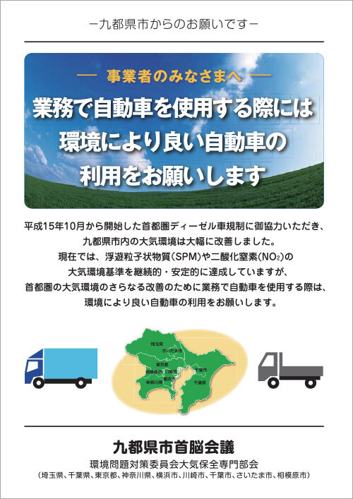 大気環境のさらなる改善のために、これからも規制適合車の利用をお願いいたします。