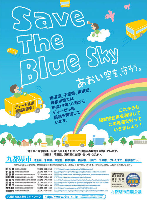 この青空を守るため、さらなる大気環境の改善のために、これからも規制適合車の利用をお願いいたします。
